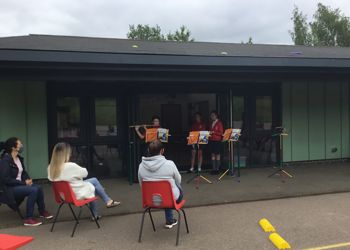 Sharing instrumental work with little outside performances to parents and children who want to learn next year.